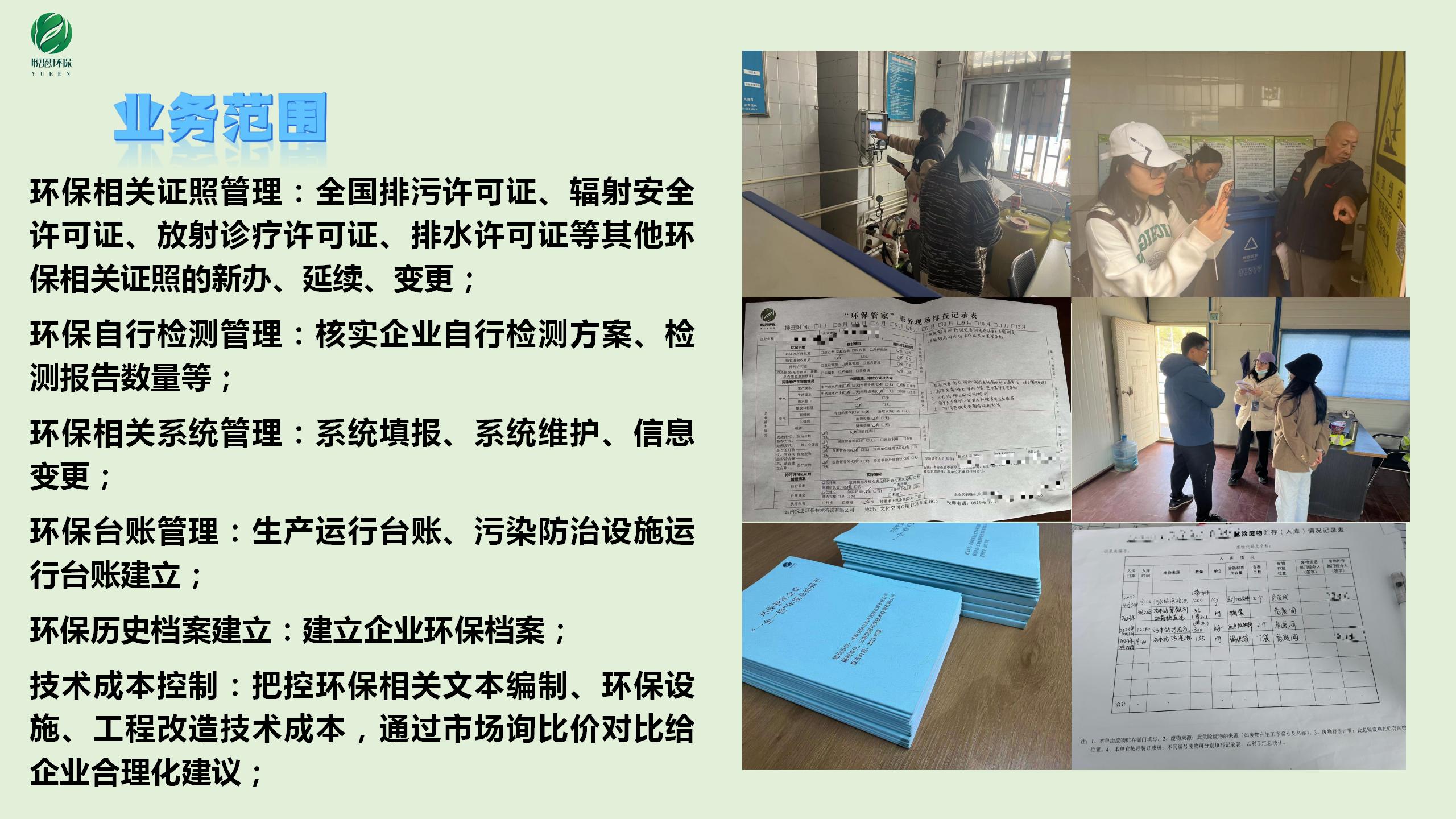 作為一家專業(yè)的環(huán)保管家服務(wù)公司,對于企業(yè)環(huán)保服務(wù)我們具有詳細的工作服務(wù)流程和完整的服務(wù)管理體系。人才團隊是推動公司發(fā)展必不可少的核心因素,公司所管理的團隊包含環(huán)保管家專職技術(shù)人員,環(huán)保各大領(lǐng)域?qū)<?,環(huán)保設(shè)施建設(shè)維修工程人員,環(huán)境監(jiān)測人員,輻射環(huán)境監(jiān)測人員等。公司人才多年從事相關(guān)行業(yè),具有豐富的專業(yè)經(jīng)驗。同時公司也非常注重人才的培養(yǎng),積極為新人創(chuàng)造內(nèi)部學習、實踐的機會,鼓勵和扶持新員工接受外部專業(yè)培訓及專業(yè)考核,創(chuàng)造適合人才快速成長的環(huán)境,為公司的人才儲備和可靠的環(huán)保管家服務(wù)打下了良好基礎(chǔ)。2021年11月5日通過中國國家質(zhì)量認證中心(CQC)頒發(fā)的《環(huán)境綜合咨詢(環(huán)保管家)服務(wù)認證證書》,證書編號:CQC21HB1006R0/46500,認證范圍包含:環(huán)境影響評價及竣工環(huán)境保護驗收服務(wù)、排污許可申領(lǐng)服務(wù)、環(huán)境應(yīng)急預案;排污許可證后監(jiān)管、環(huán)境隱患排查爭端與解決方案服務(wù);環(huán)保相關(guān)合規(guī)咨詢服務(wù)。